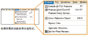 當(dāng)在梯形圖編輯窗口中通過鍵盤輸入指令時(shí),會(huì)自動(dòng)顯示提示的指令。不必記住整個(gè)助記符,而只需從列表中選擇指令即可,因而簡化了輸入操作。